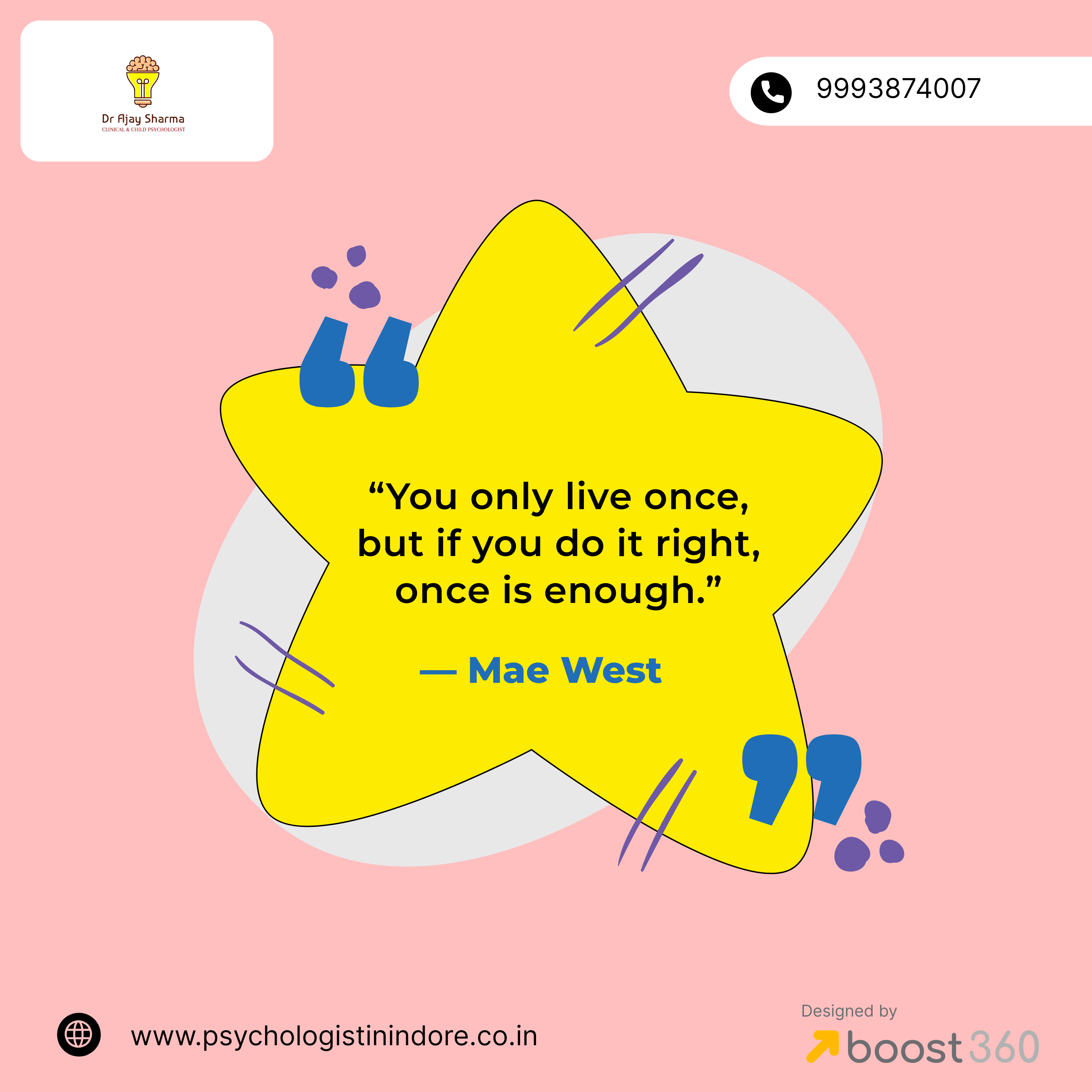 “You only live once, but if you do it right, once is enough.”— Mae West #inspirationalquotes #motivationalquotes #inspiration #motivation #quotes #quoteoftheday